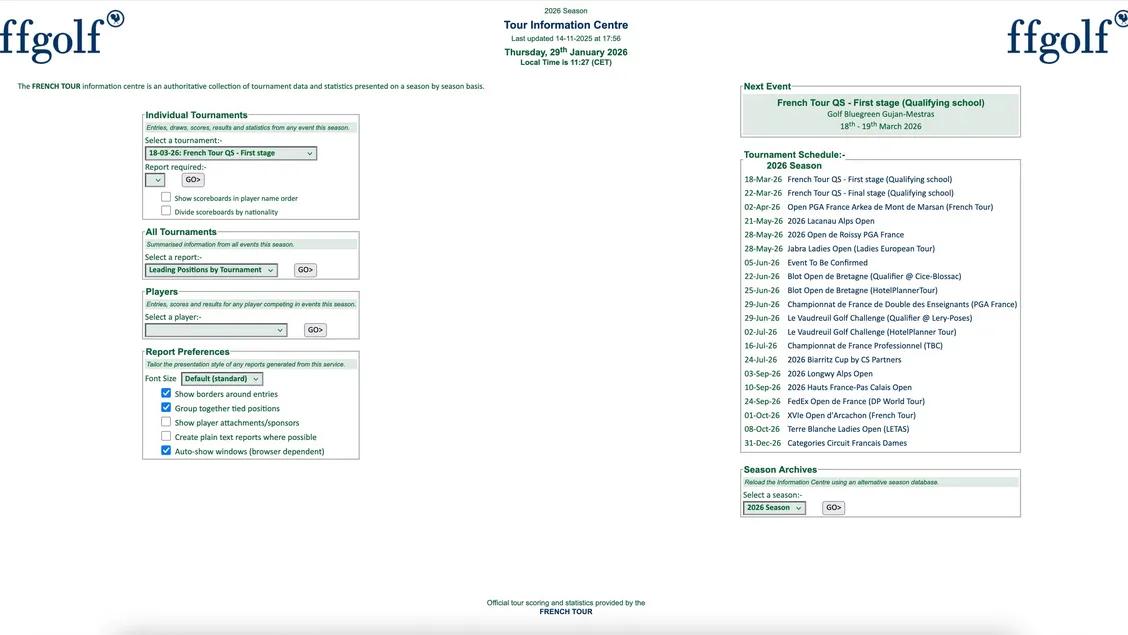 Une plateforme dédiée aux inscriptions, aux infos des tournois féminins et masculins et au scoring lors des épreuves.