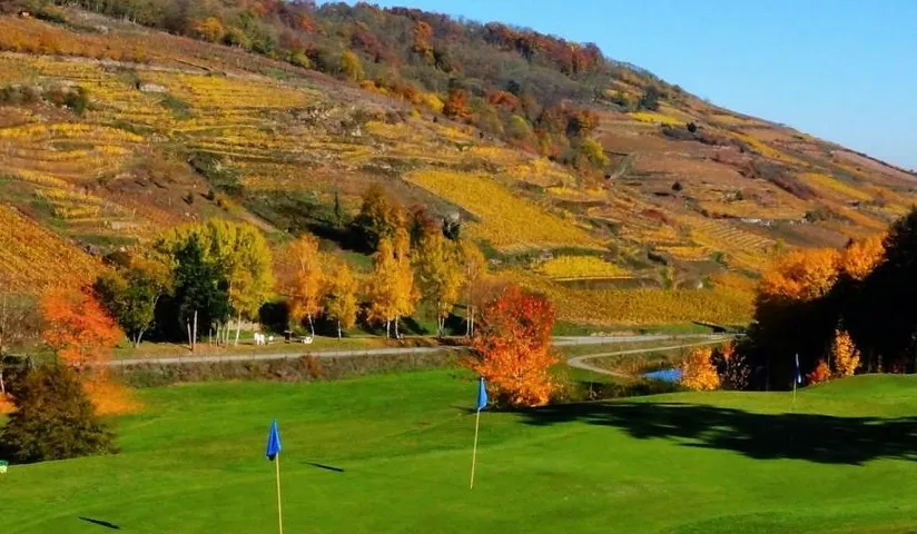 « UN GOLF DE CARACTÈRE AU CŒUR DE LA ROUTE DES VINS D’ALSACE » Aux portes de Colmar, entre vignes et forêts, le Golf Resort Ammerschwihr Trois-Epis, accroche son parcours aux reliefs vallonnés des Vosges. D’une longueur de 5207 mètres, ce 18 trous, construit en 1990, se révèle à la fois agréable à jouer et très complet techniquement. Une grande partie des trous de ce parcours vous offre des points de vue à vous couper le souffle, sur la forêt environnante, le vignoble et le village d’Ammerschwihr. Notre offre de voiturettes vous permettra de profiter pleinement de ces panoramas. Pour un séjour golfique en Alsace, nous vous recommandons notre résidence hôtelière composée de 72 appartements. L’établissement dispose d’une piscine intérieure, d’un sauna et d’un service hôtelier de qualité. Sans oublier le restaurant du golf où vous pourrez savourer une cuisine variée composée de produits régionaux et déguster d’excellents vins d’Alsace dont le fameux Grand Cru Kaefferkopf. Amoureux du golf et de la nature, ce sont autant de raisons d’organiser votre séjour au Golf Resort Ammerschwihr Trois Épis !
